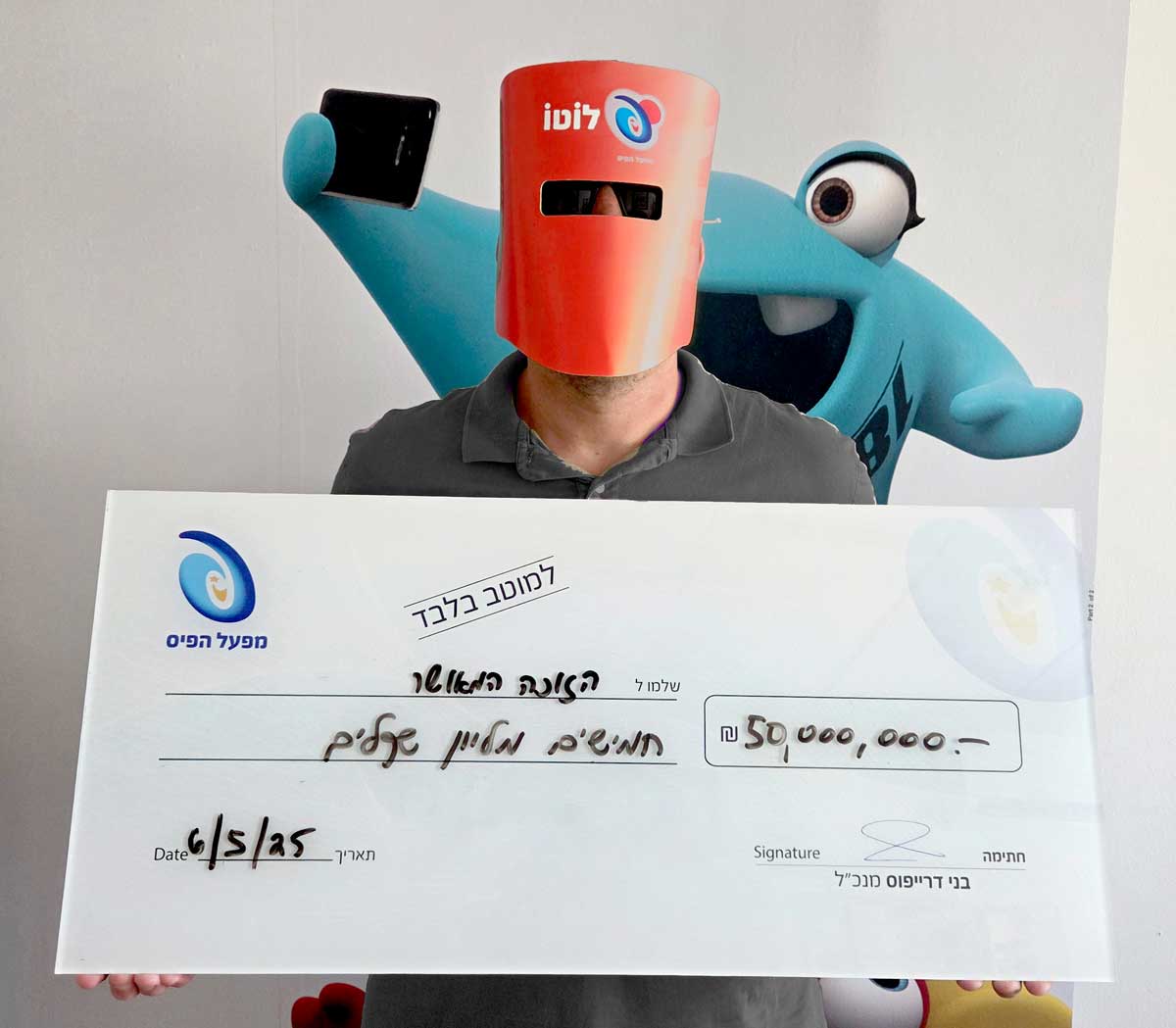 בהגרלת הלוטו אשר התקיימה במוצ"ש (26/4) זכה זוכה יחיד בפרס הראשון במסלול הדאבל לוטו בסכום של 50 מיליון ₪. 10 ימים לאחר ההגרלה הגיע הזוכה לבית מפעל הפיס וגרם לאנשי המקום להיות מופתעים במיוחד, שכן הזוכה עד לרגע הגעתו למחלקת הזכיות, לא ידע מה הסכום בו זכה.