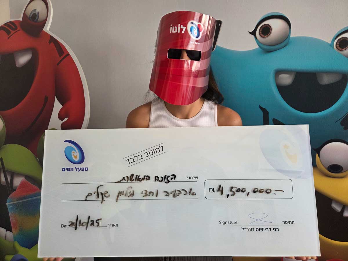 "כשהגעתי הביתה, המשפחה הקרובה חיכתה לי. בהתחלה חשבתי שזכיתי ב-4,500 ₪ ולא הבנתי למה כולם מאושרים. הבטתי שוב וראיתי שמדובר ב-4,500,000 ₪. מאז מוצאי שבת אני לא מצליחה לישון ומאוד מתרגשת."